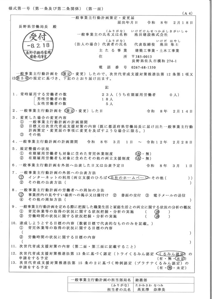 一般事業主行動計画策定
